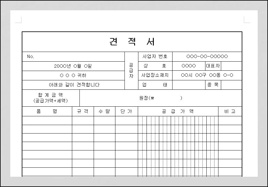 전문적이면서도 단정한 견적서 서식을 구하기란 만만치 않아요. 이런 불편함을 없애려고 현장에서 바로 적용 가능한 템플릿을 마련했습니다.