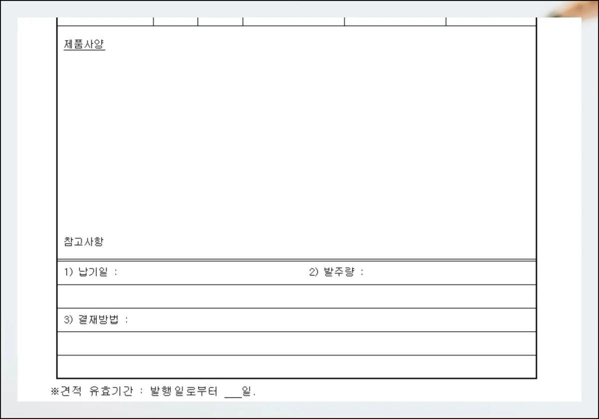 서비스 분야라면 소요 시간과 투입 인원 관련 부분을 상세하게 작성할 수 있고요. 생산 업체는 재료비와 운반비 영역을 구체적으로 기재할 수 있어요.