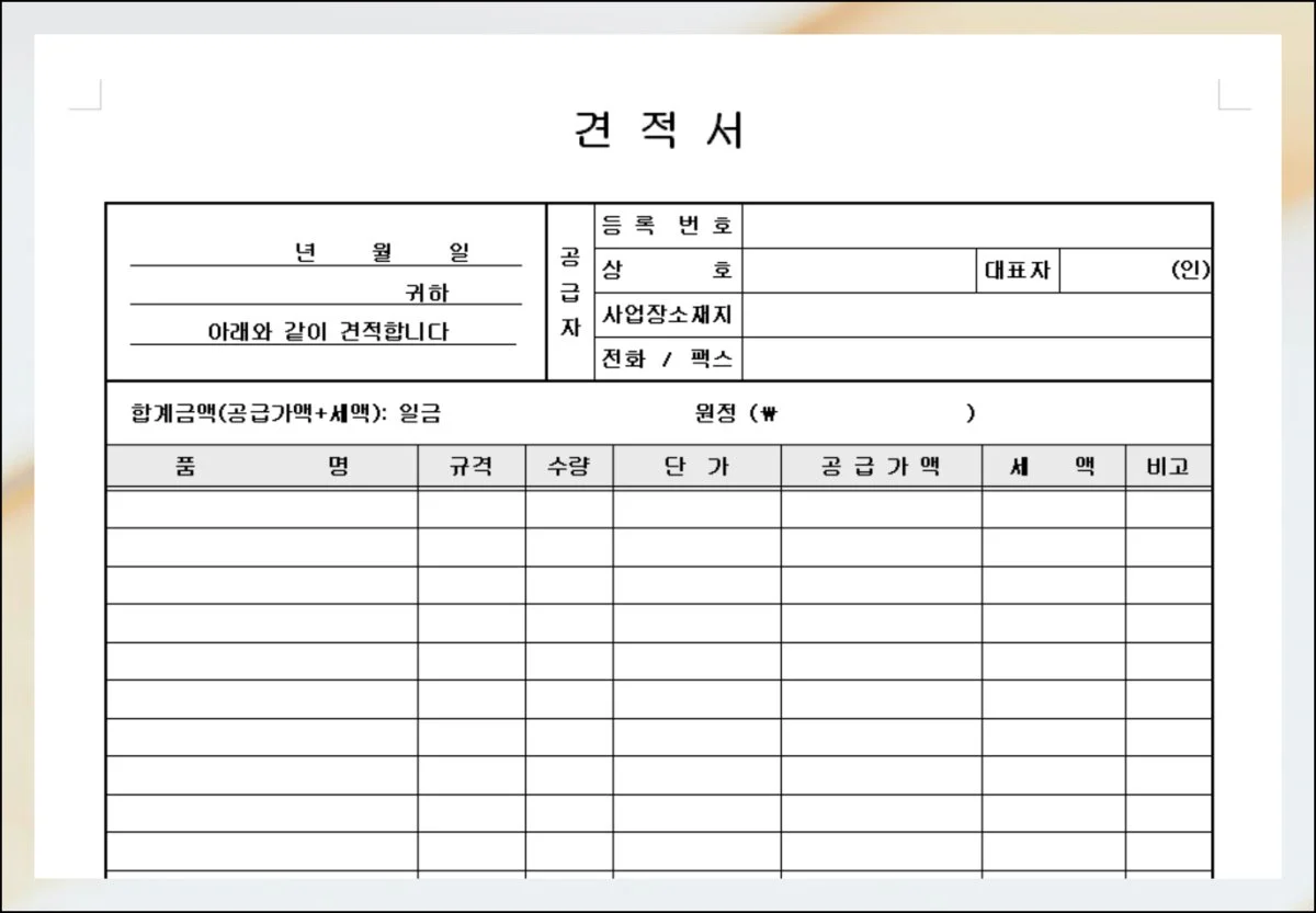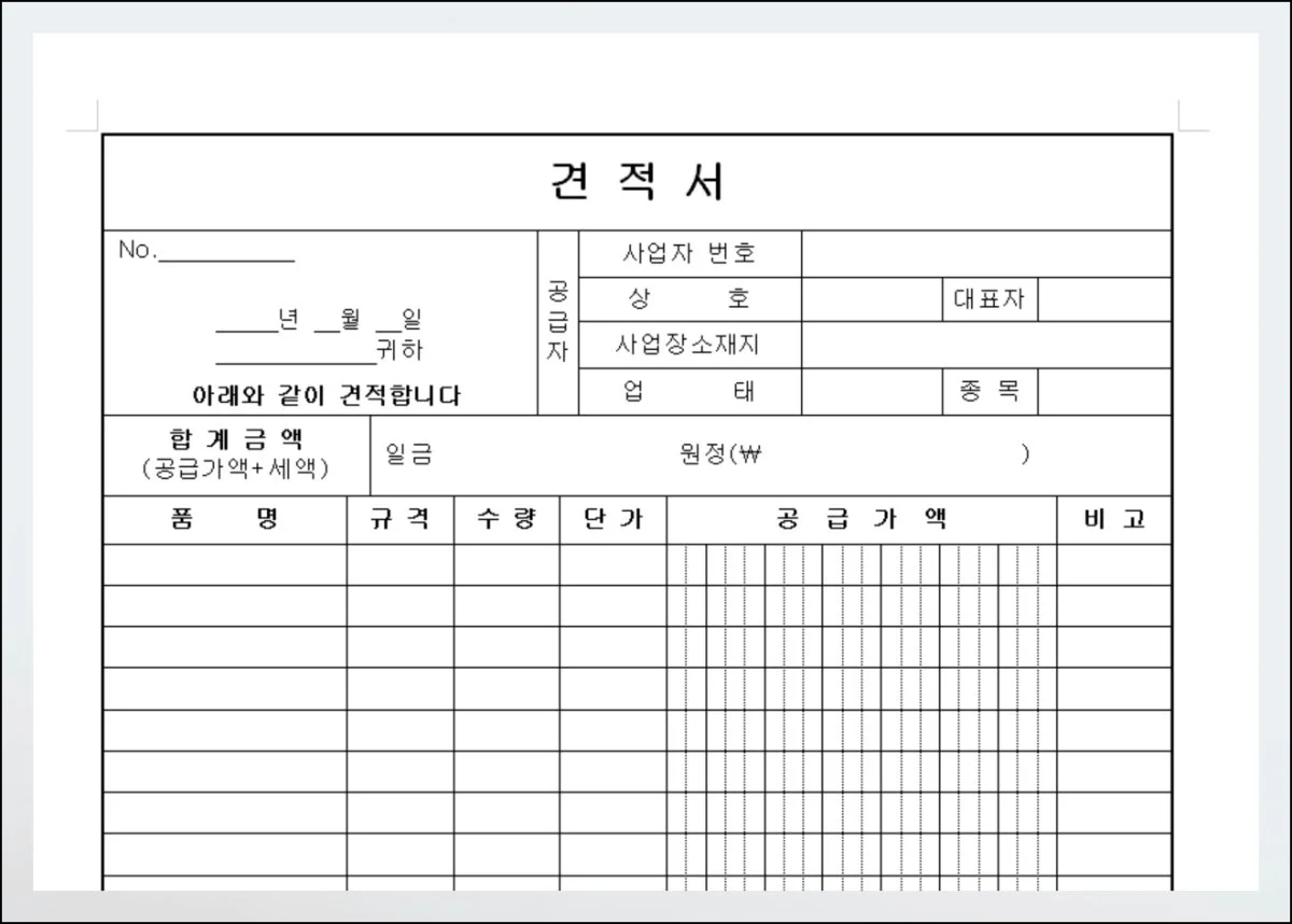 거래를 시작할 때 가장 먼저 주고받는 서류가 바로 견적서인데요. 명확한 내용과 깔끔한 형식을 갖춘 문서는 신뢰감을 높이는 데 큰 역할을 합니다.