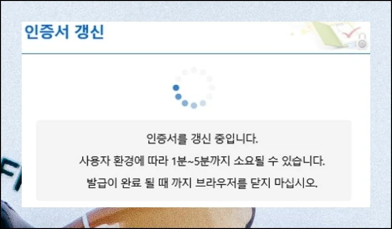 안내 사항을 따라 잠시 기다리면 갱신된 공인인증서를 바로 받아볼 수 있어요.