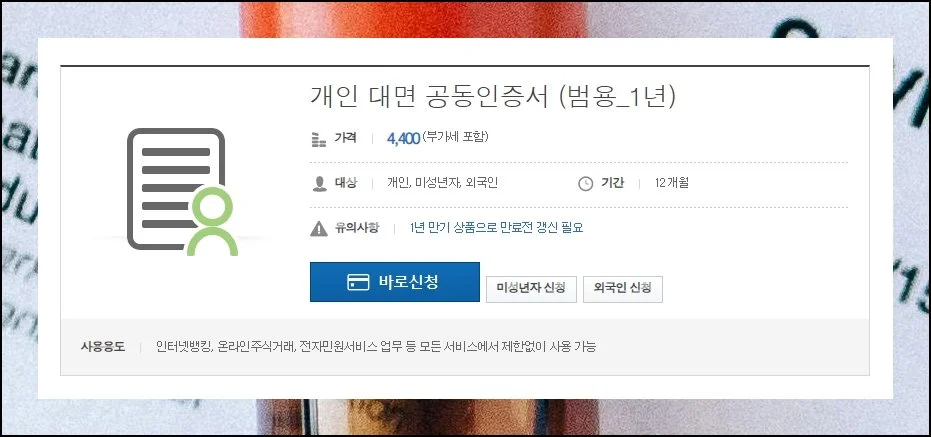 범용 공인인증서는 4400원으로 가장 광범위하게 활용 가능한 선택지예요. 금융 기관, 주식 매매, 관공서 민원 등 어디서든 막힘 없이 이용 가능합니다.