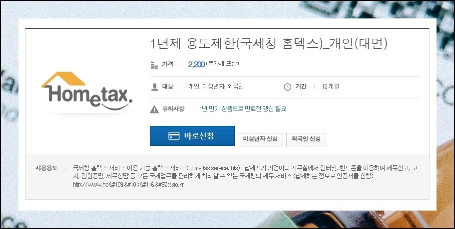 납세 작업만 처리할 예정이라면 지출을 줄이는 길이 있어요. 국세청 전용 공인인증서는 2200원으로 범용 대비 반값입니다.