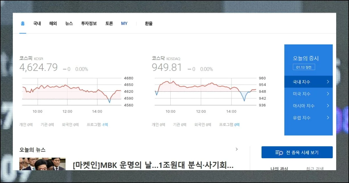 이럴 때 다음 포털의 금융 섹션을 활용하면 복잡한 과정 없이 필요한 정보를 한눈에 파악할 수 있습니다. 코스피와 코스닥 지수는 물론이고, 개별 종목의 증권시세까지 체계적으로 정리되어 있어 편리해요.
