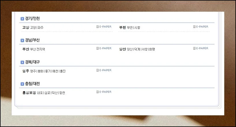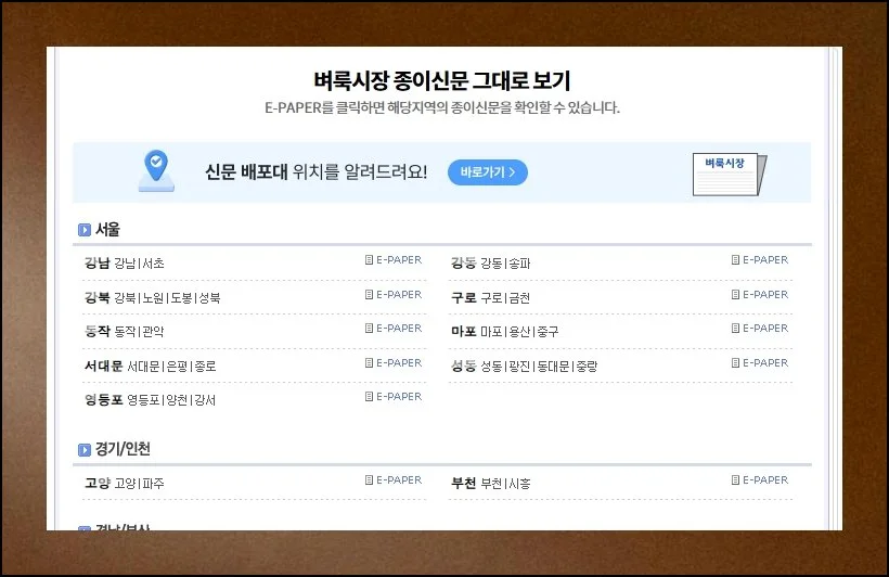 같은 수도권이라도 세부 구역에 따라 종이신문 게재 내용이 제각각이니 자기 생활권에 맞는 곳을 정확히 골라주세요.
