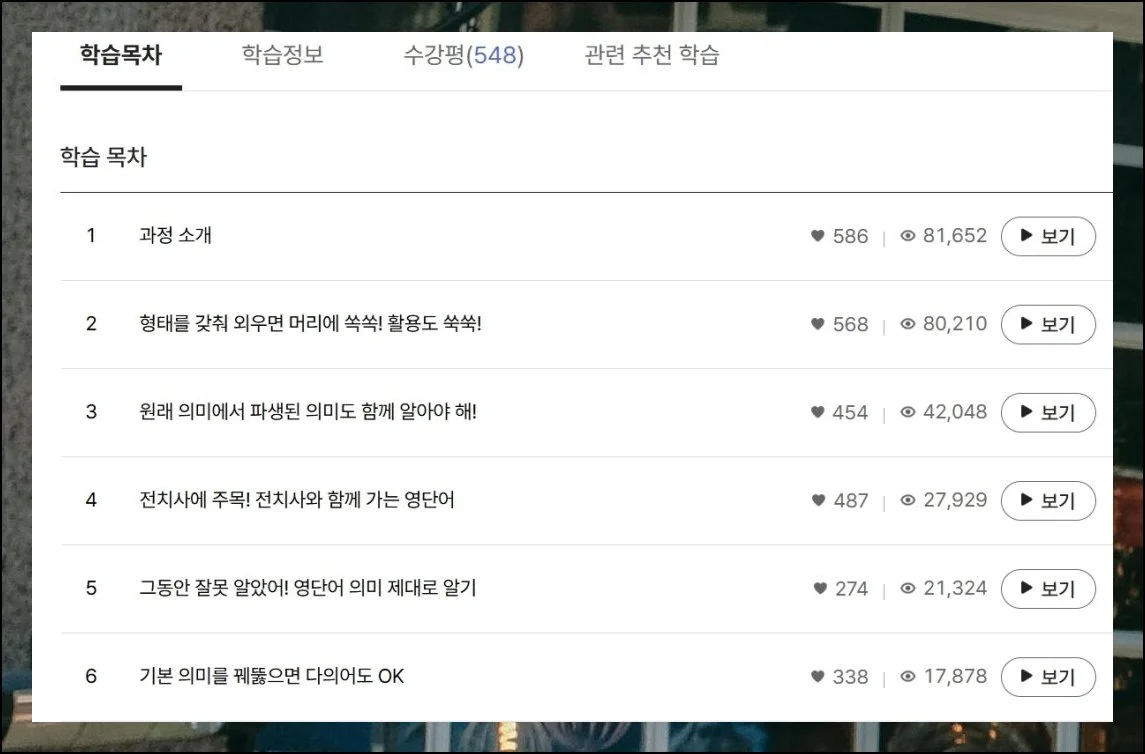 관심 가는 코스를 누르면 세부 안내를 한 화면에서 파악 가능해요. 전체 분량과 커리큘럼을 꼼꼼히 읽어보는 게 공부 전 좋은방법입니다.