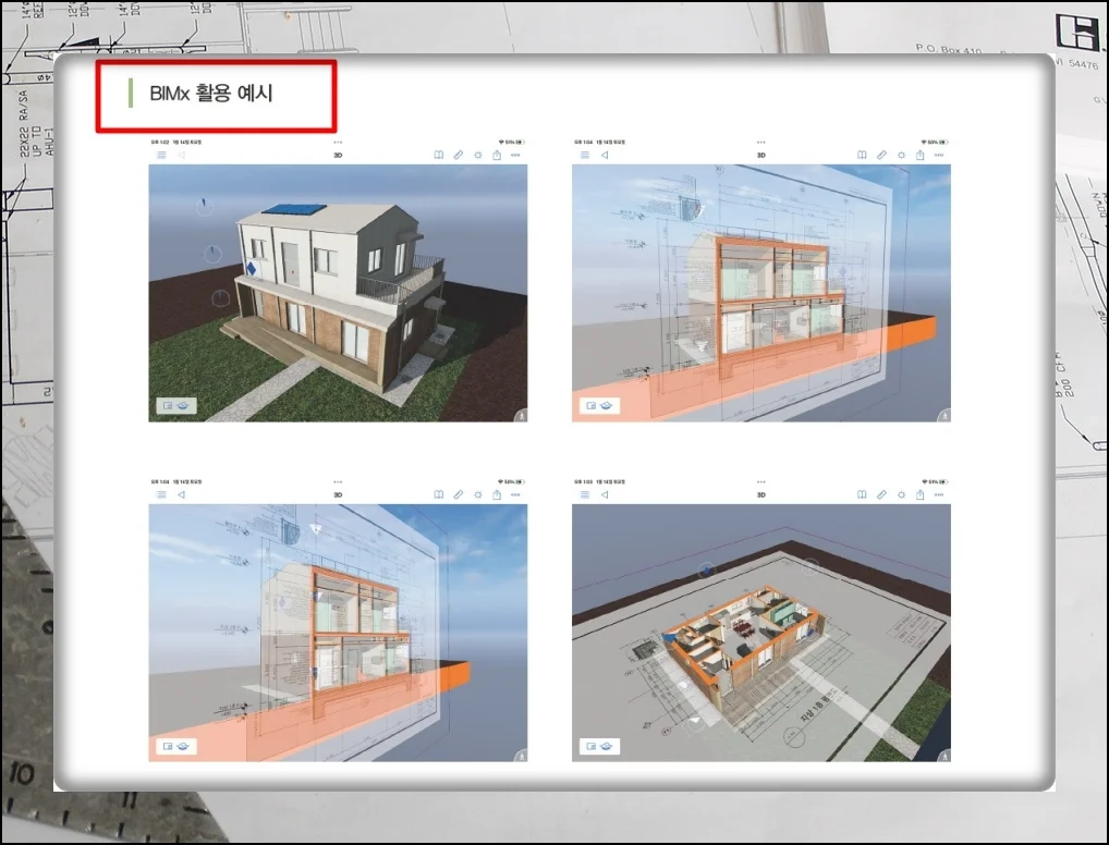BIMX로 구현한 도면을 보면 감탄이 절로 나와요. 전문가가 작업한 것 같은 고품질 결과물이 나옵니다.