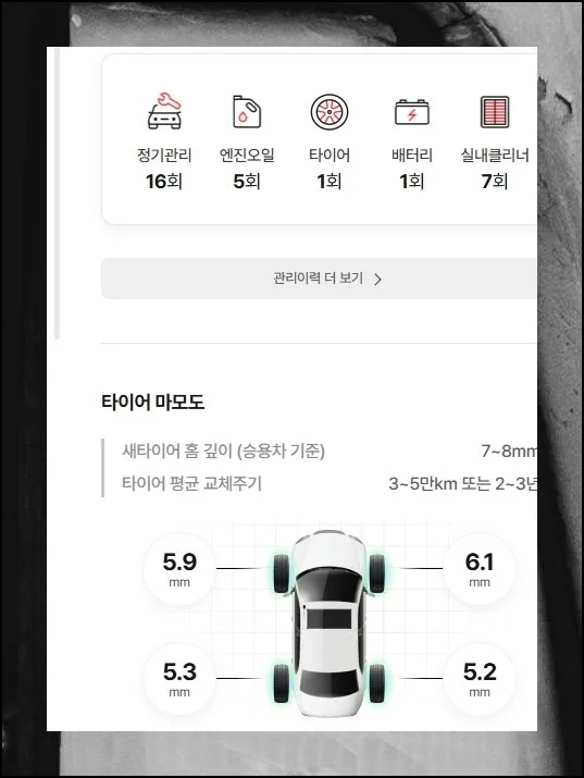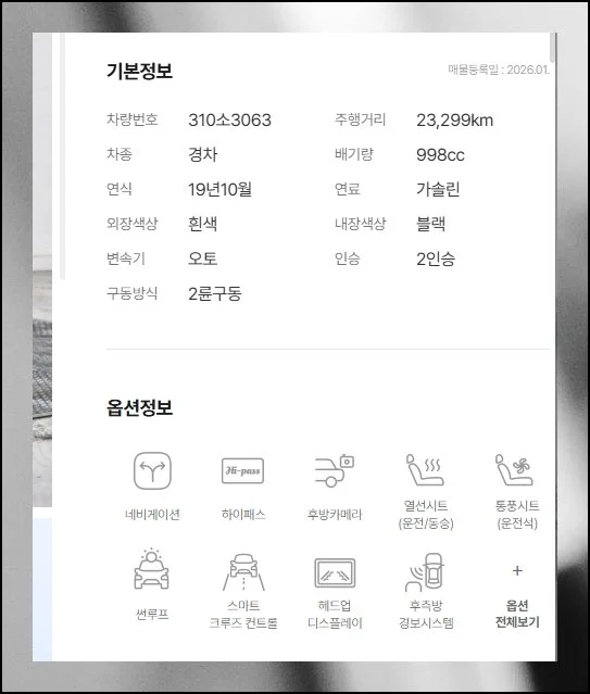 전체 목록에서는 핵심만 노출됩니다. 하지만 개별 중고차 매물을 골라 들어가면 구체적인 자료를 접할 수 있어요.