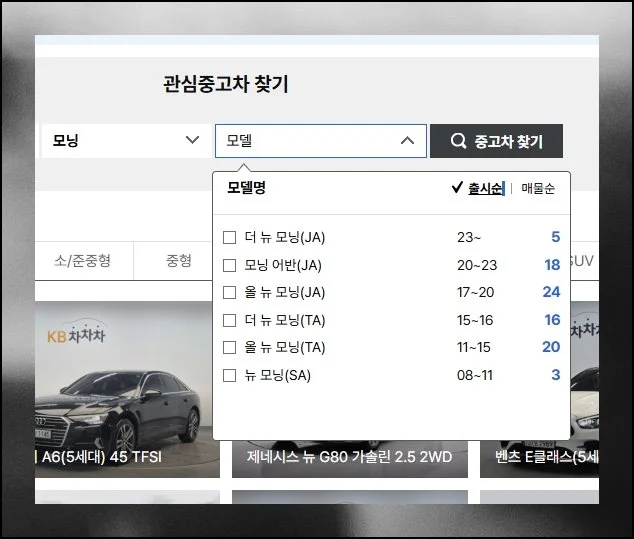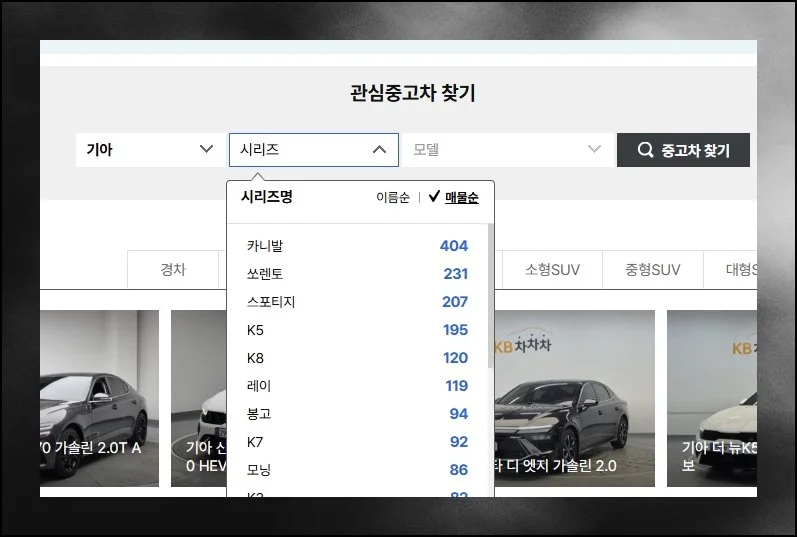 등록된 중고차 물량이 넉넉한 차종을 택하는 편이 유리합니다. 견줄 대상이 풍부해야 시세표를 통해 현실적인 거래 수준을 가늠할 수 있거든요.