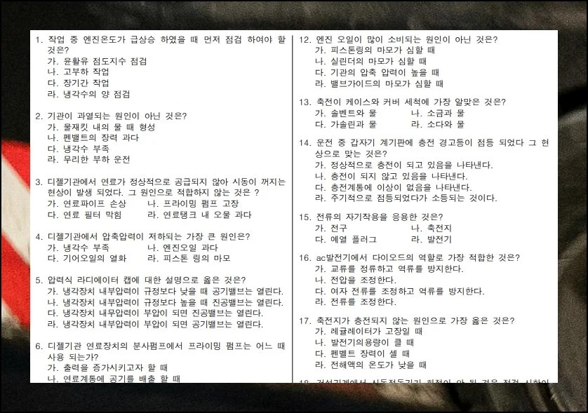 반복 학습을 통해 디젤기관의 작동 원리나 출전지의 특성, 연료탱크 관리 방법 같은 실무 지식을 자연스럽게 습득할 수 있어요.