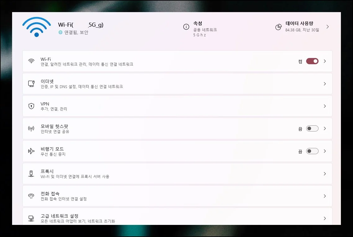 이제 유선랜카드를 활용한 방법을 알려드릴게요. 앞서 본 화면에서 고급 네트워크 설정 항목을 선택하면 새로운 메뉴가 나타나요.