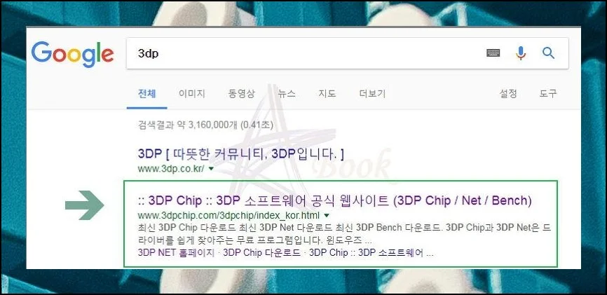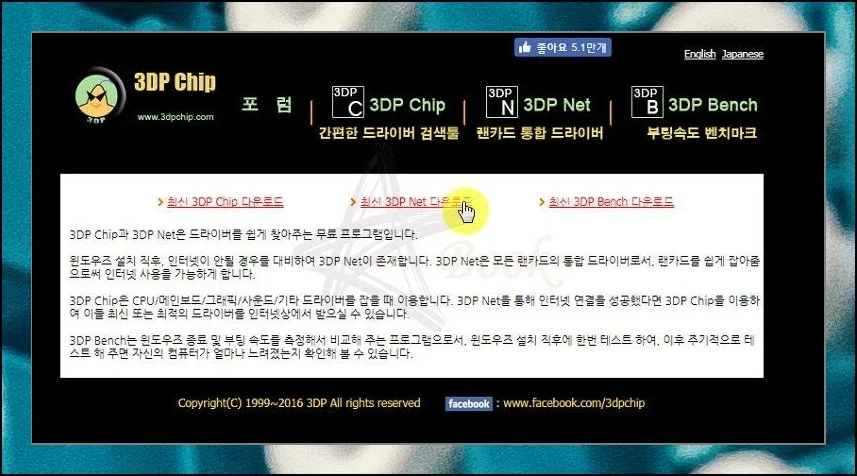 검색창에 3DP를 입력하면 적합한 드라이버를 자동 탐색하는 3DP NET이 바로 뜹니다. 무료 배포라 부담이 없어요.