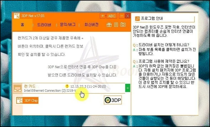 #네트워크연결안될때 #인터넷안됨해결 #3DPNET #공유기초기화 #랜카드드라이버