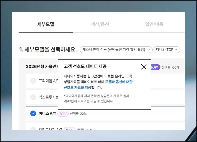 신차가격표 시스템을 통해 어림짐작이 아닌 구체적 자금 계획까지 세우는 것이 가능해집니다.