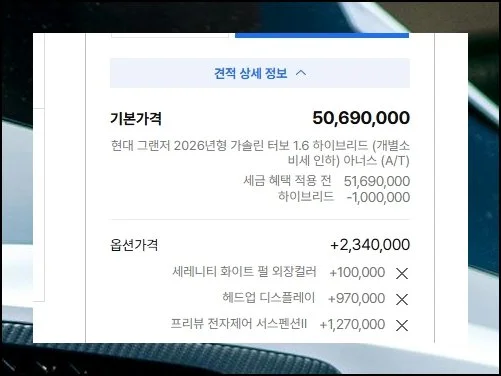 모든 선택을 끝내고 부수 경비까지 기재하면 최종 지불 총액이 산출됩니다. 이 흐름을 밟으면 현대자동차 신차가격표를 오차 없이 도출해낼 수 있어요.