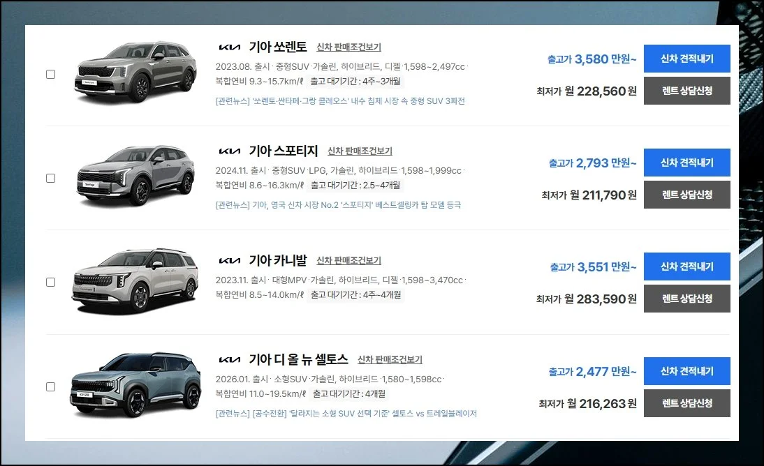 앞서 안내한 절차는 현대자동차에만 국한되지 않아요. 기아나 쌍용 같은 국내 메이커 신차가격표도 동일 경로로 파악 가능합니다.