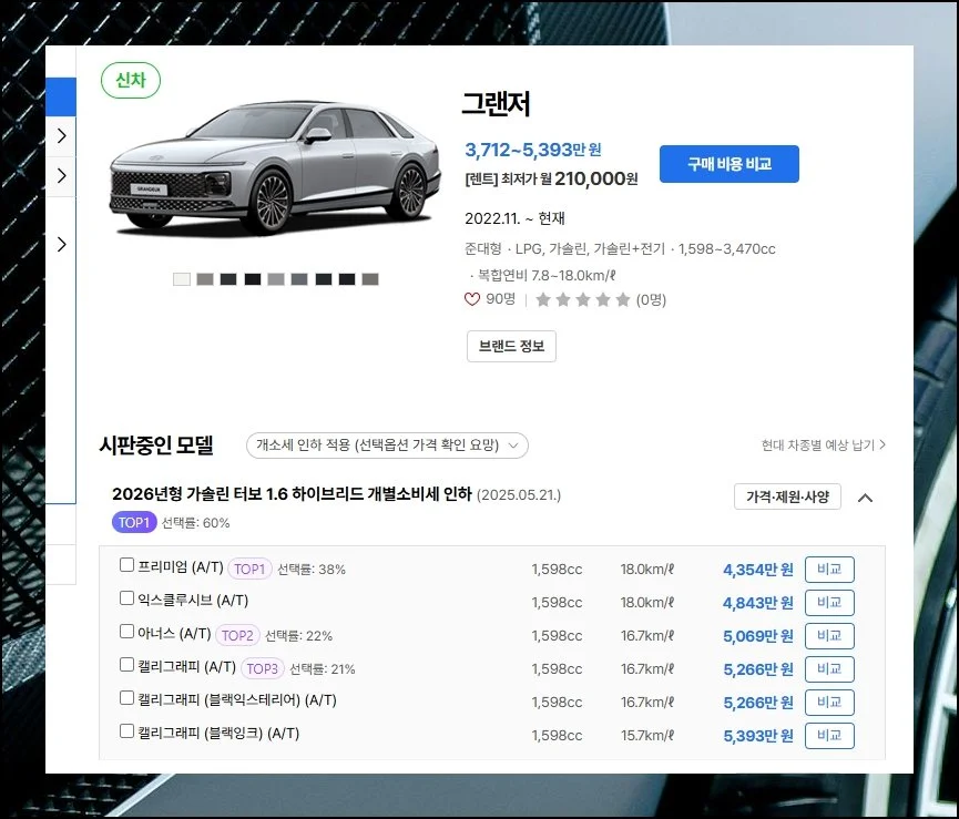 특히 현대 브랜드는 트림과 선택 사양이 워낙 다양해서 단순 비교가 쉽지 않습니다. 이럴 때 현대자동차 신차가격표를 체계적으로 조회하면 실질적인 출고 비용을 명확히 파악할 수 있어요.