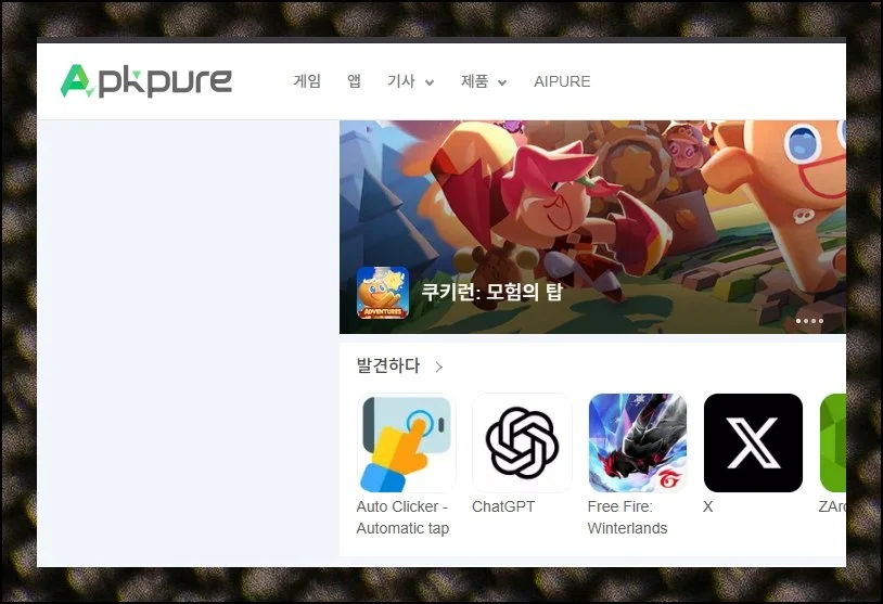 스마트폰이나 컴퓨터로 apkpure 사이트를 열어보세요. 공식 스토어가 없는 기기에서도 앱을 받거나 설치하기 돕는 곳이에요.