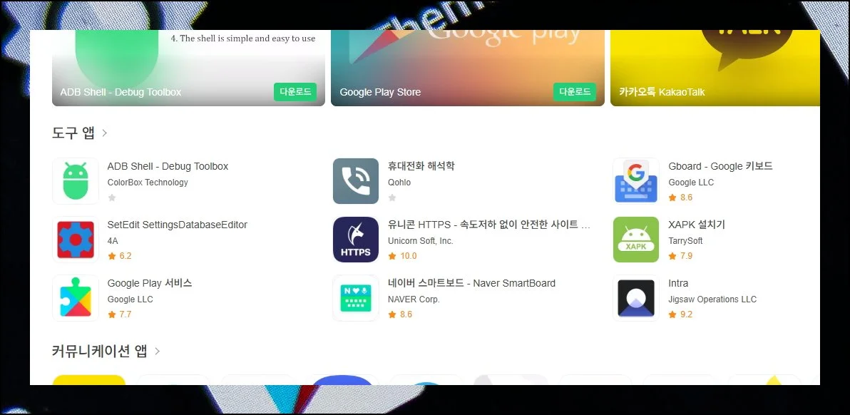 앱 리스트를 보다 보면 play 스토어 서비스를 발견하게 될 거예요. 다른 인기 앱들도 함께 표시되는데요.