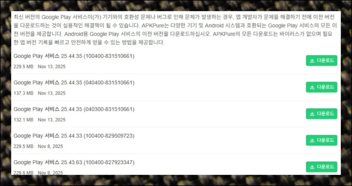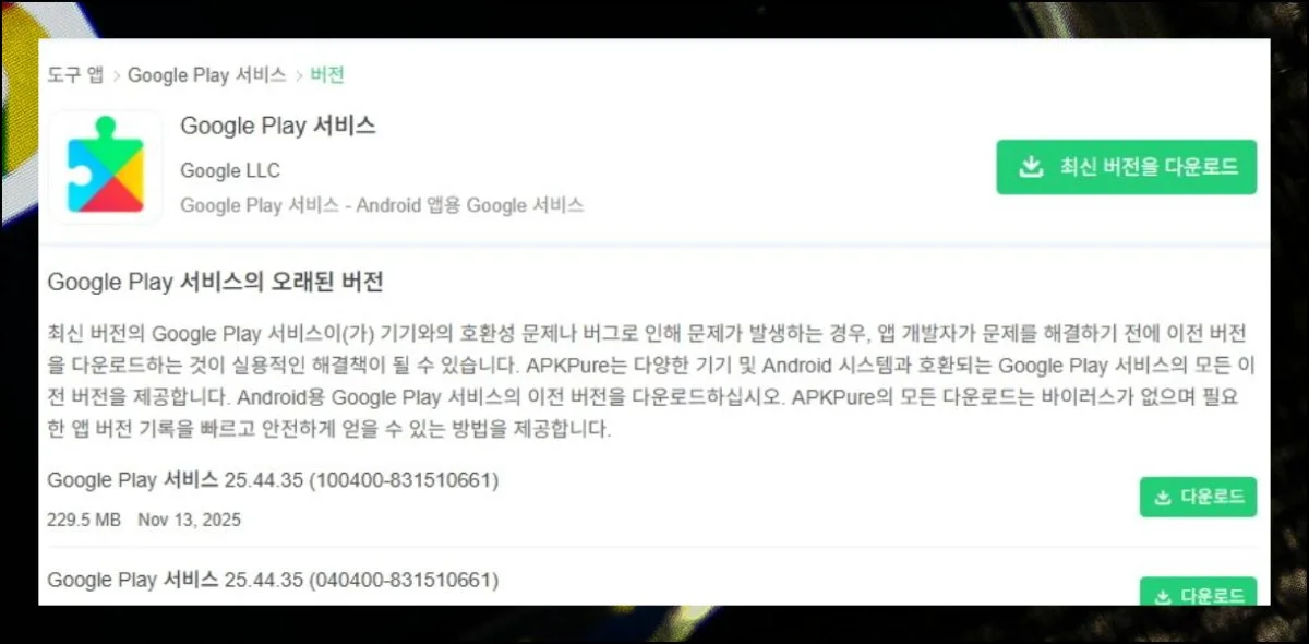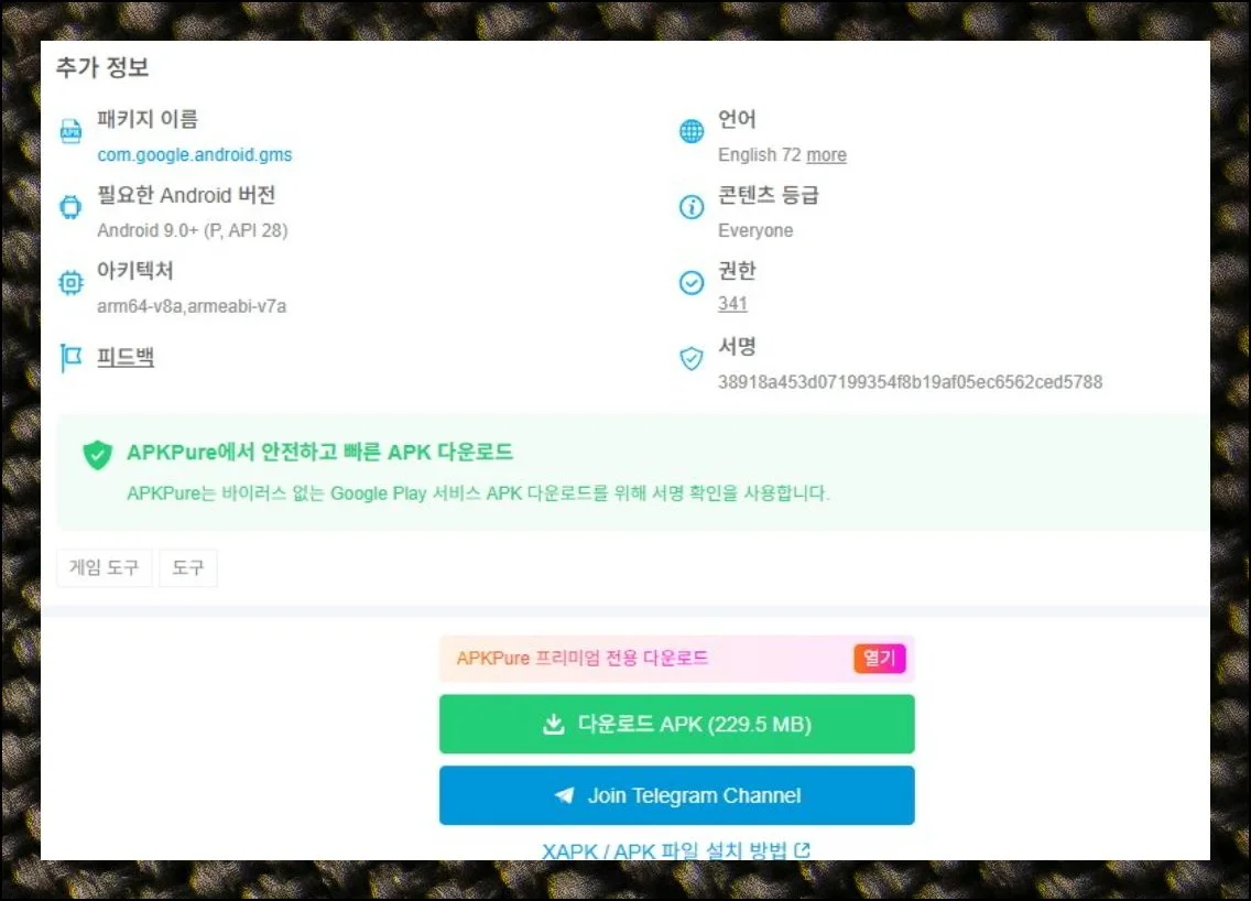 다운로드 버튼을 눌러서 apk 파일을 받으세요. 버전을 고를 때 추가 정보 영역을 살펴보는 게 중요해요.